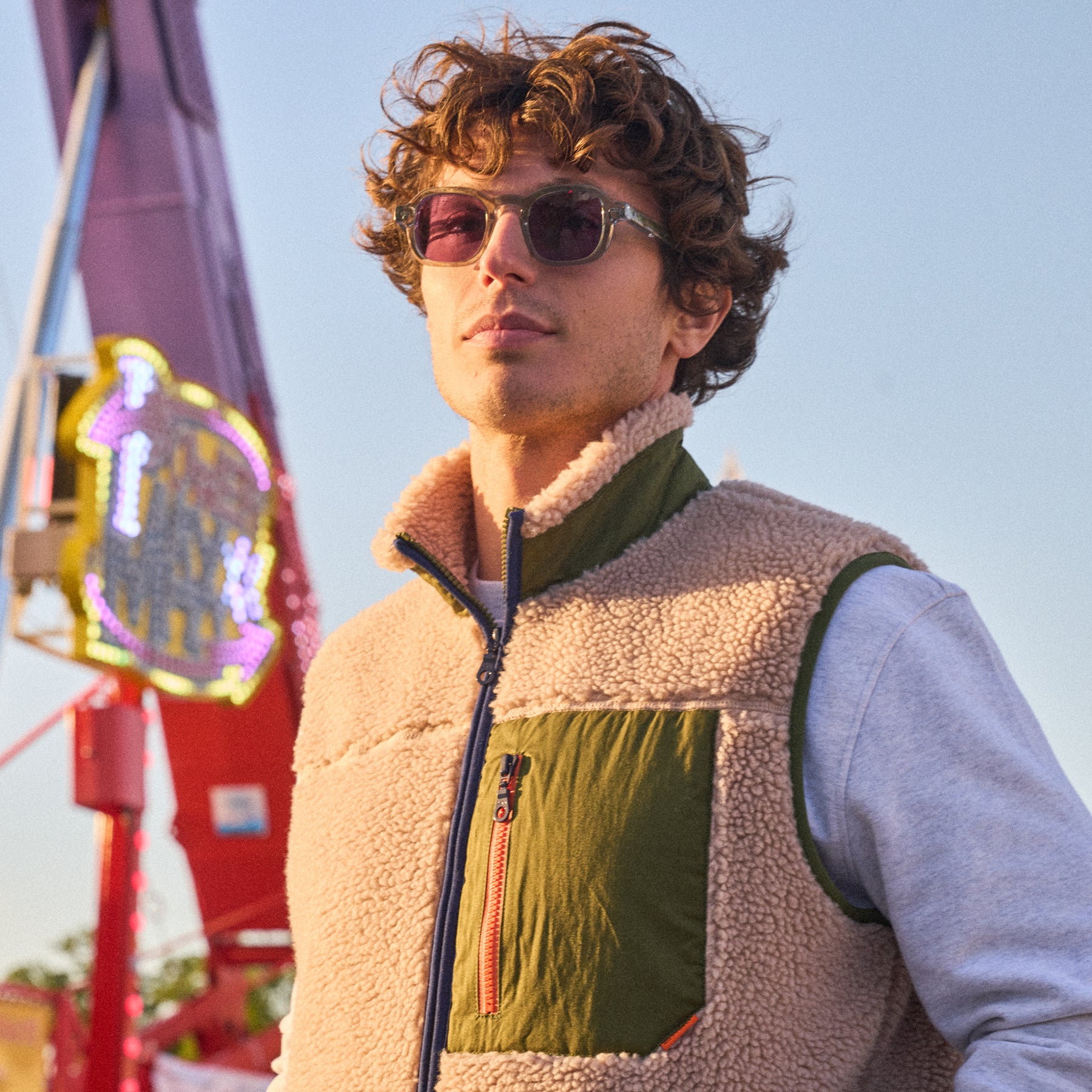 Veste sherpa mixte zippée sans manches - Kaki et marine