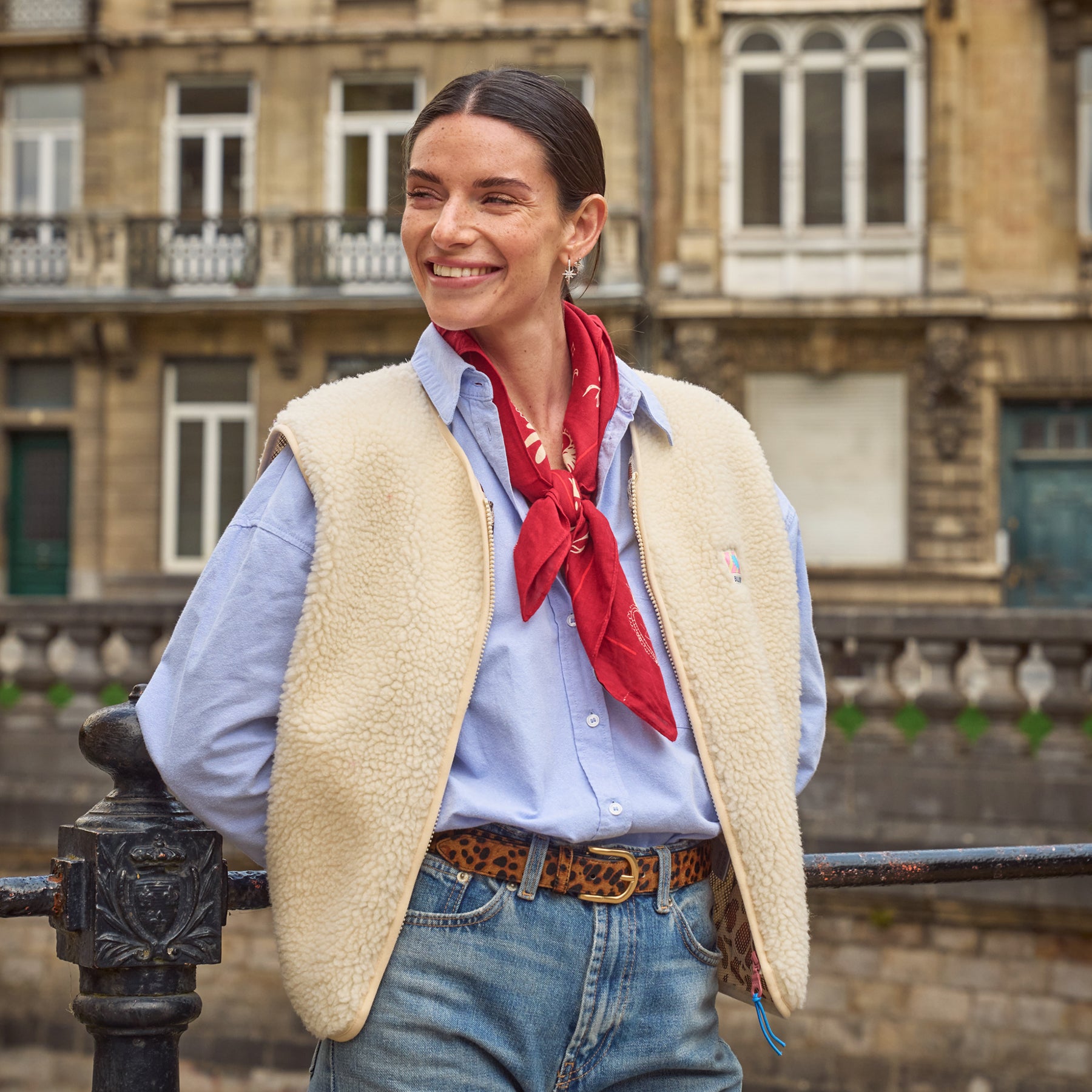 Veste sherpa mixte zippée sans manches - Ivoire et marine