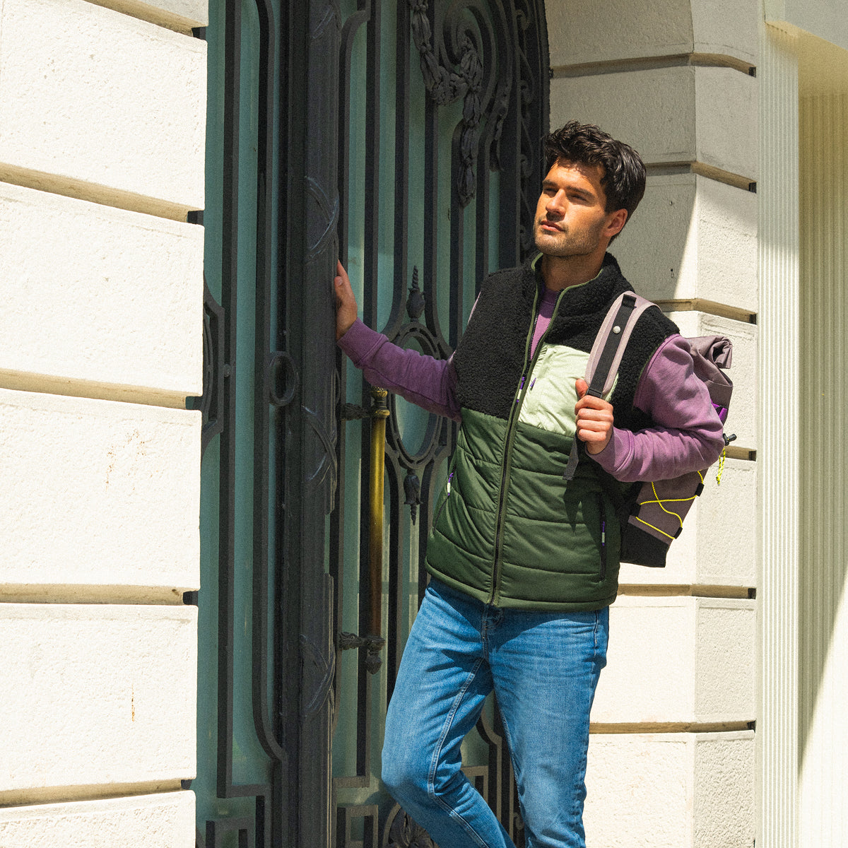 Veste bi-matières en sherpa sans manche - Vert