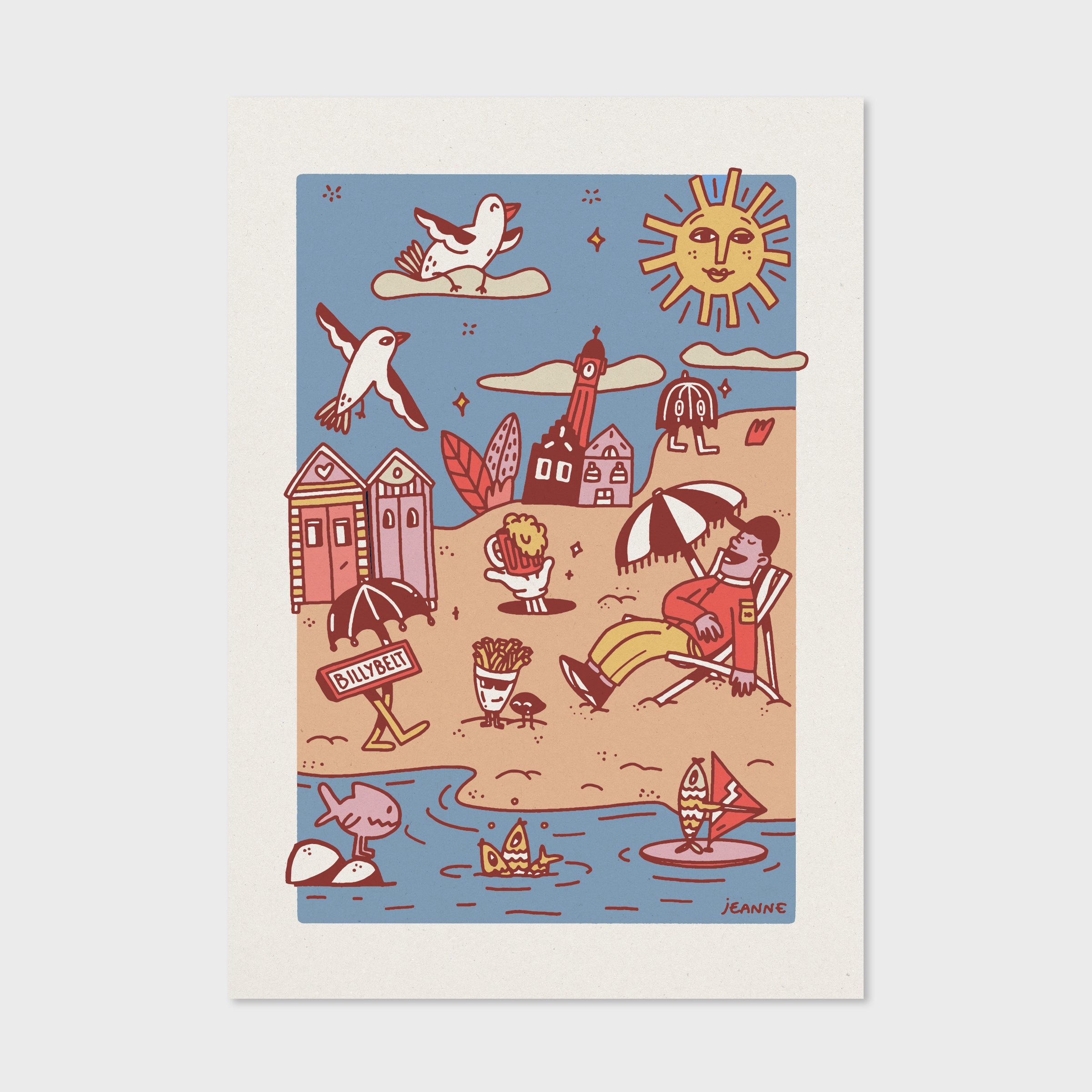 Resulting from a collaboration with Lille-based illustrator Jeanne, the poster showcases a summer day on the Opal Coast. It notably features some iconic elements of the Hauts-de-France region.
