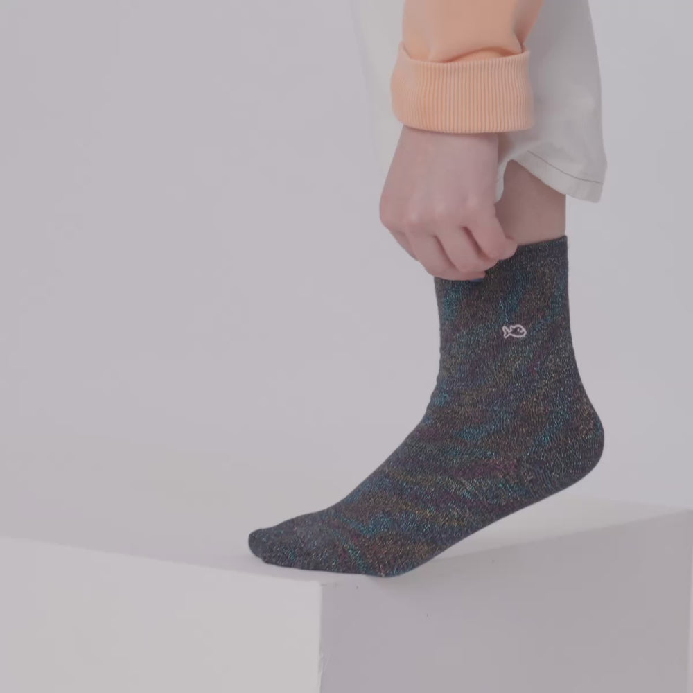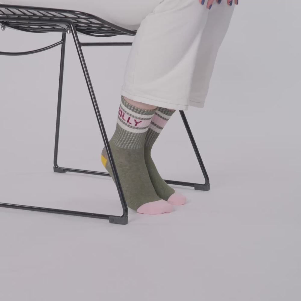 • Heart combed cotton socks - Olive green and pink