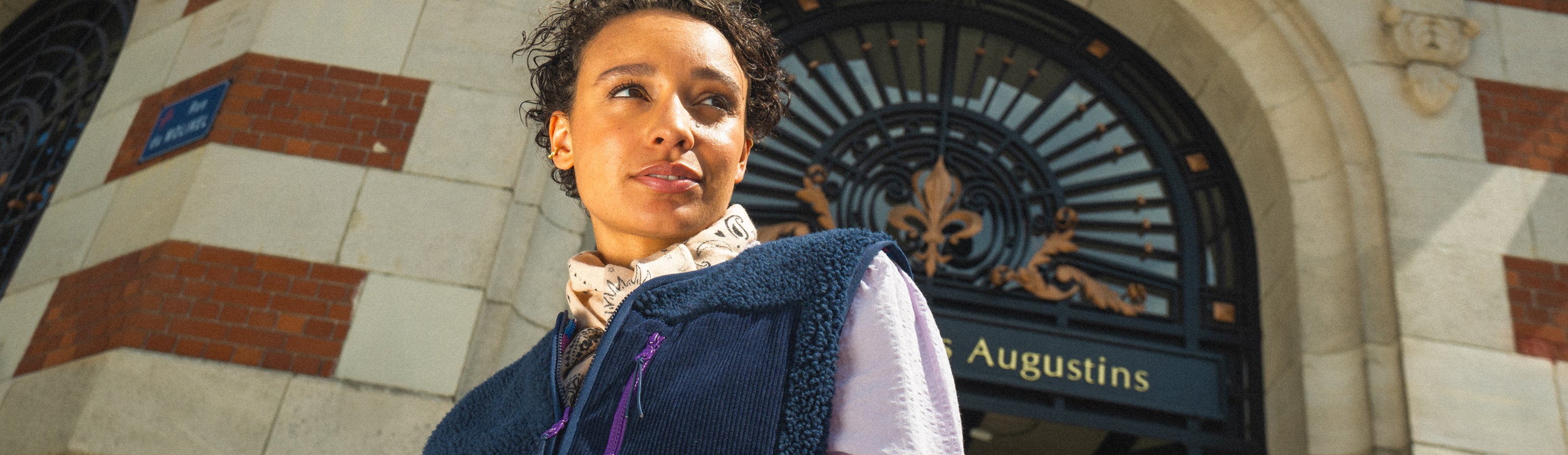 De sherpa-jas dankt zijn naam aan het pluizige materiaal, dat op schapenwol lijkt. Warm en ademend, is het dankzij zijn praktische en stijlvolle karakter een must-have geworden in de garderobe van vrouwen. Onze Sherpa-jas voor dames heeft een rits over de volledige lengte, een contrasterende borstzak en een meshvoering voor uitstekende warmteregulatie.