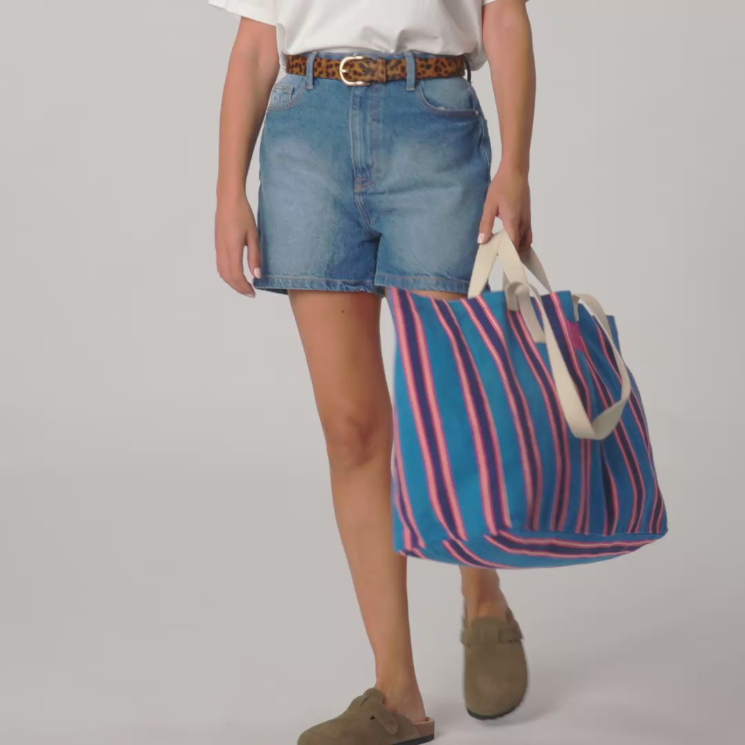 Boodschappentas van 100% biologisch katoen - Gestreept, blauw