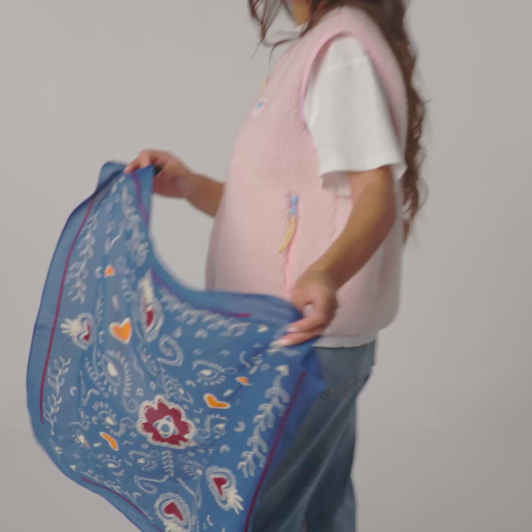 Onze lichte en zachte kleine sjaal van GOTS-gecertificeerd biologisch katoen geeft elk seizoen een stijlvolle touch. Met een afmeting van 70 x 70 cm kun je hem gemakkelijk om je nek, in je haar of aan een tas dragen. Een elegante essential, ontworpen om lang mee te gaan en elke outfit te verfraaien.