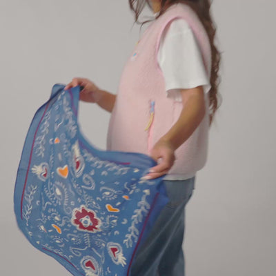 Kleine damessjaal van 100% biologisch katoen Lise - Blauw