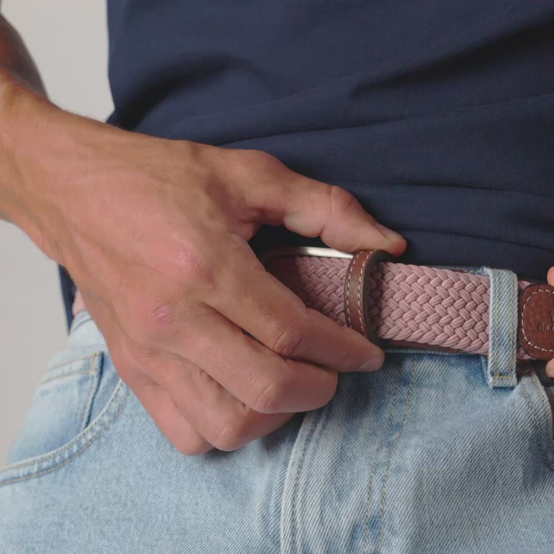 Ceinture tressée élastique unie - Old pink