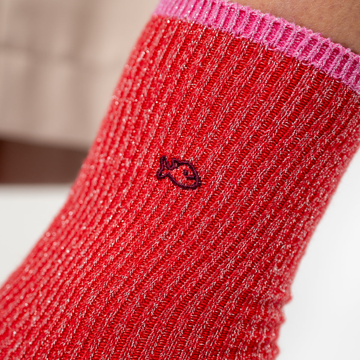 Chaussettes pailletées en coton peigné vintage - Rouge