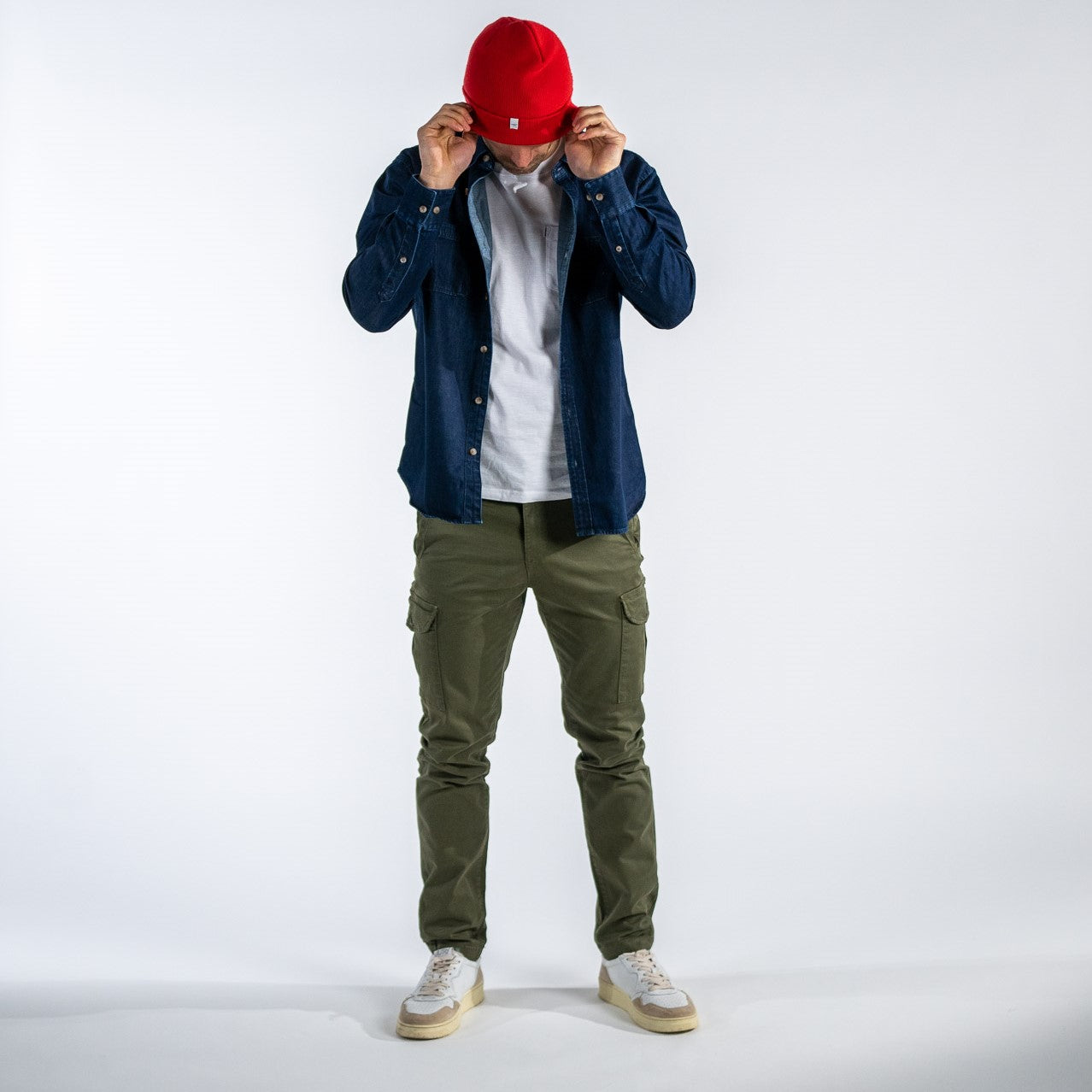 KakiPour un style original et casual, adoptez le pantalon cargo. Sa coupe droite et ses poches multiples donneront une touche de modernité à votre look.