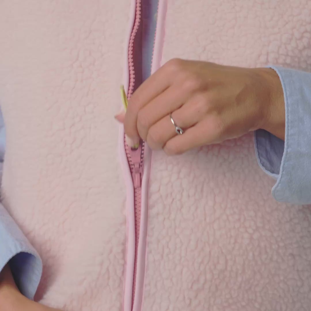 Veste en sherpa femme zippée sans manches - Rose pâle